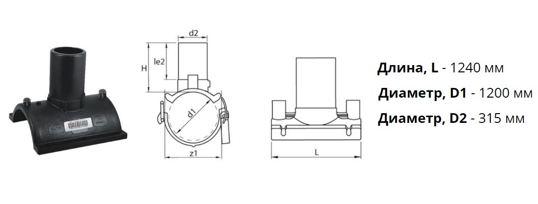 Патрубок-накладка э/с 1200х315 мм SDR11 ПЭ100 электросварной