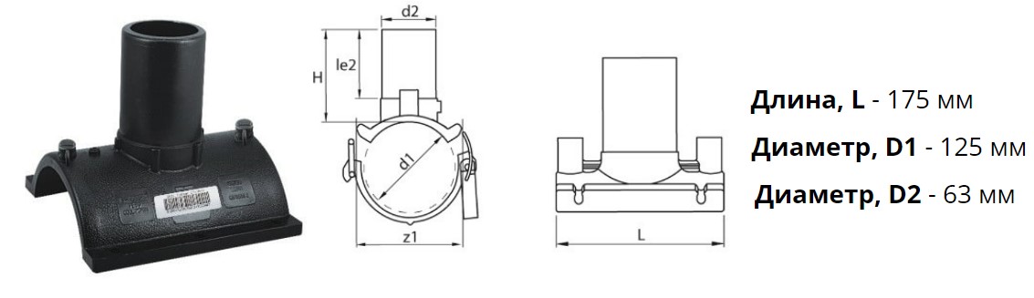 Патрубок-накладка э/с 125х63 мм SDR11 ПЭ100 электросварной