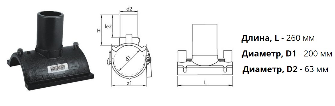 Патрубок-накладка э/с 200х63 мм SDR11 ПЭ100 электросварной