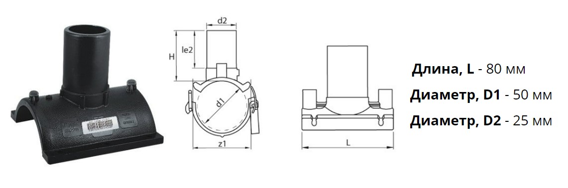 Патрубок-накладка э/с 50х25 мм SDR11 ПЭ100 электросварной