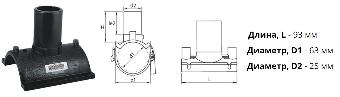 Патрубок-накладка э/с 63х25 мм SDR11 ПЭ100 электросварной