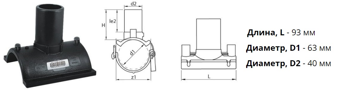 Патрубок-накладка э/с 63х40 мм SDR11 ПЭ100 электросварной