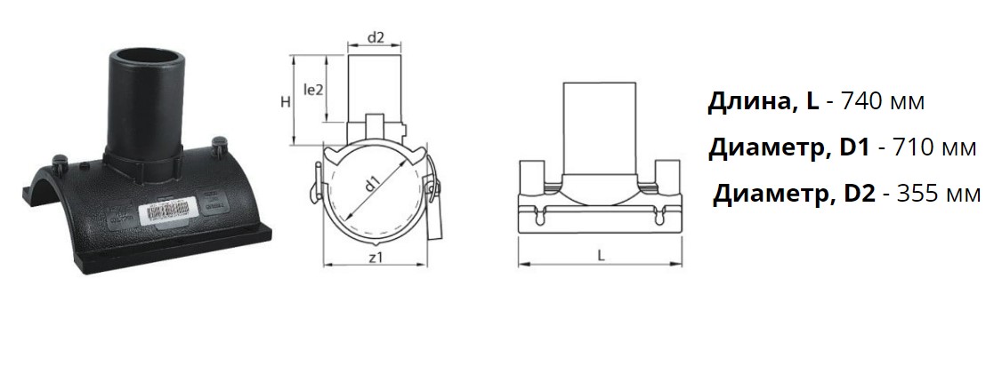 Патрубок-накладка э/с 710х355 мм SDR11 ПЭ100 электросварной