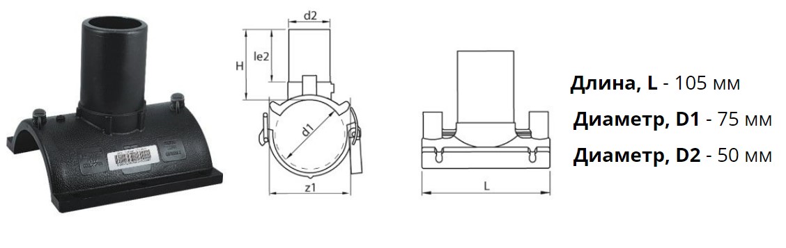 Патрубок-накладка э/с 75х50 мм SDR11 ПЭ100 электросварной