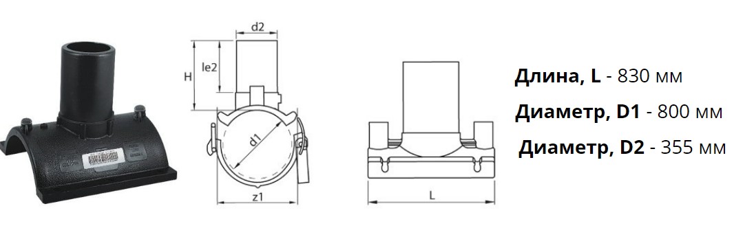 Патрубок-накладка э/с 800х355 мм SDR11 ПЭ100 электросварной