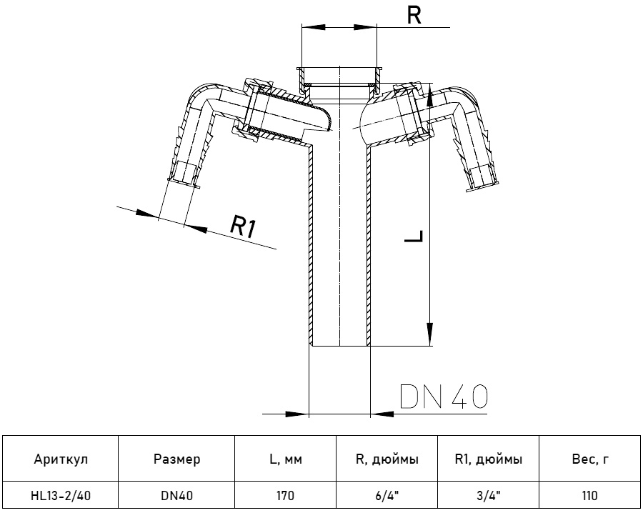 | Диаметр бокового отвода | |