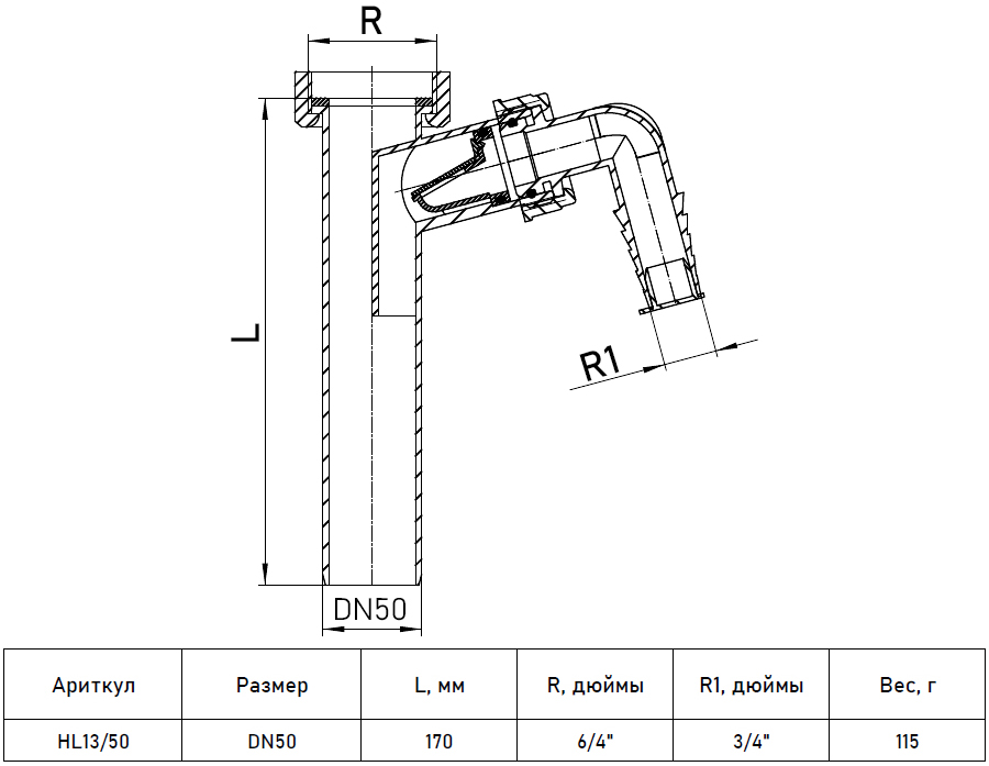 | Диаметр бокового отвода | |