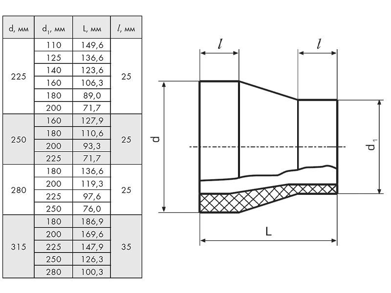 Переход 315х180 мм SDR9 ПЭ100 сварной ПНД