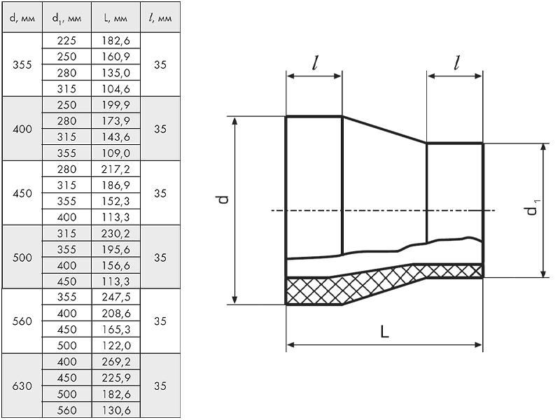 Переход 630х450 мм SDR13,6 ПЭ100 сварной ПНД