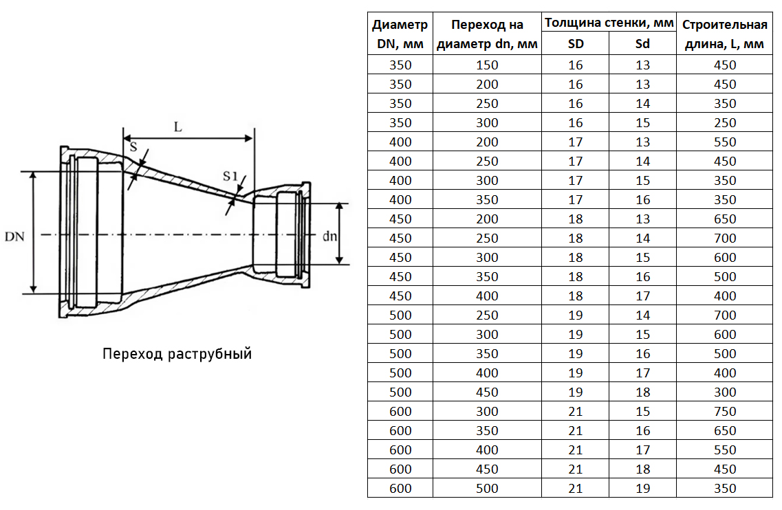 Переход ХР Ду 450х300 ВЧШГ ГОСТ 5525-88 чугунный раструбный