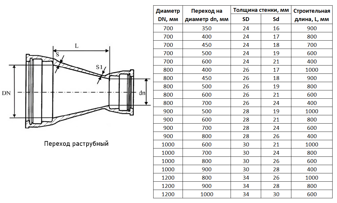 Переход ХР Ду 900х600 ВЧШГ ГОСТ 5525-88 чугунный раструбный