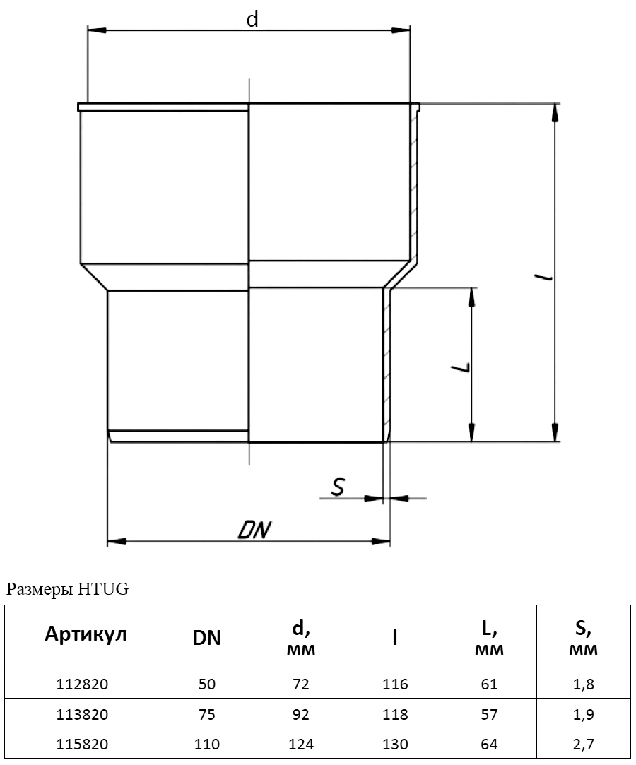 Переход на чугунную трубу PP-H Ostendorf HT HTUG DN 50