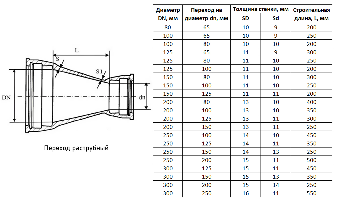 Переход ХР Ду 125х100 ВЧШГ ГОСТ 5525-88 чугунный раструбный
