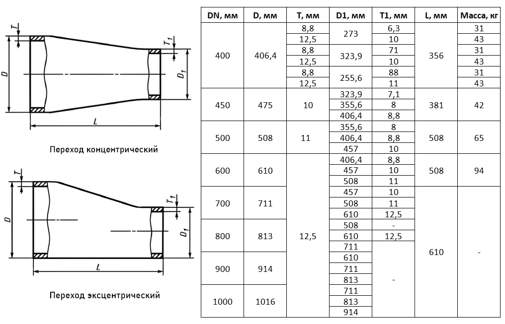 Переход стальной эксцентрический Э-406,4х12,5-255,6х11-Ст.20 ГОСТ 17378-2001