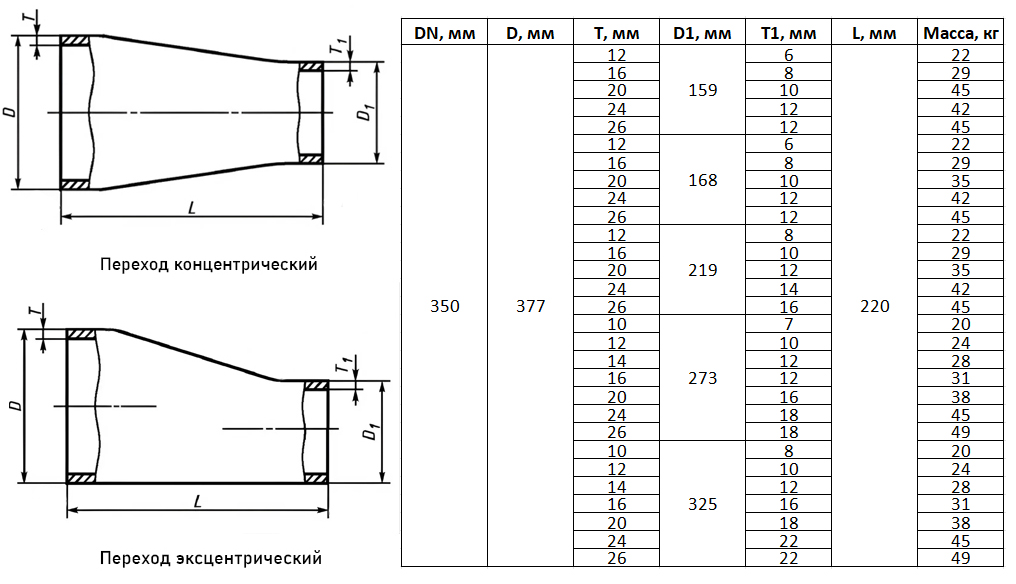 Переход стальной концентрический К-377х26-325х22-09Г2С ГОСТ 17378-2001