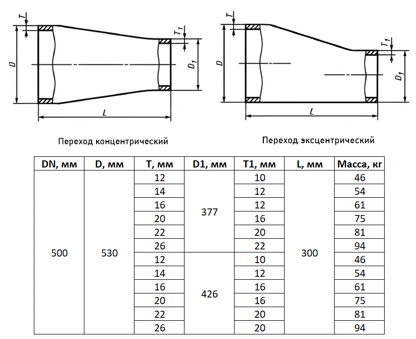 Переход стальной концентрический К-530х26-426х20-09Г2С ГОСТ 17378-2001