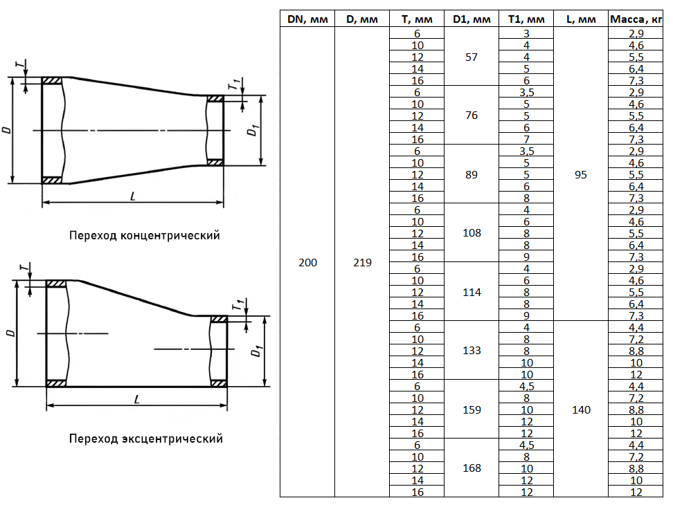 Переход стальной нержавеющий концентрический К-219х6-108х4-12Х18Н10Т ГОСТ 17378-2001