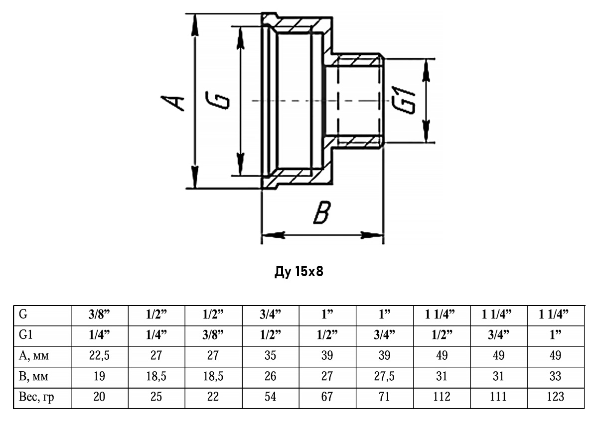 Переходник VALFEX VF.592 ВР-НР 1/2"x1/4" Ду 15x8 Ру 40 латунный