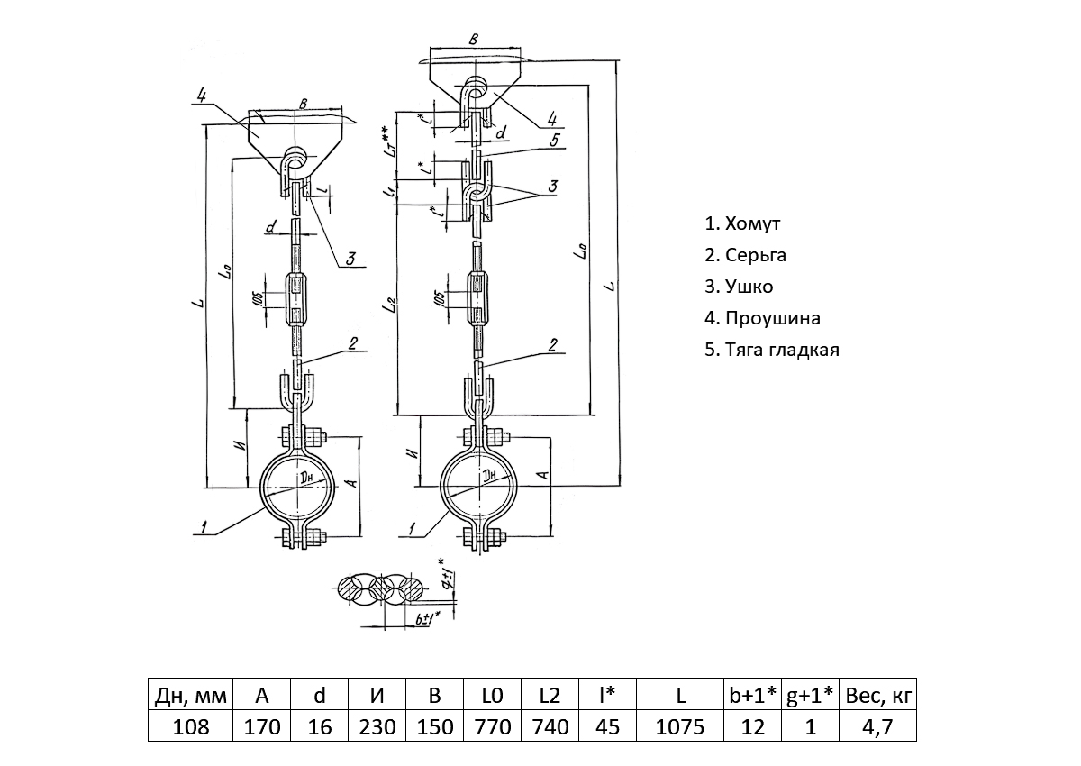 Подвеска жесткая ТС-677 Ду 108 Ру 40 Серия 5.903-13 выпуск 6-95 L 1075