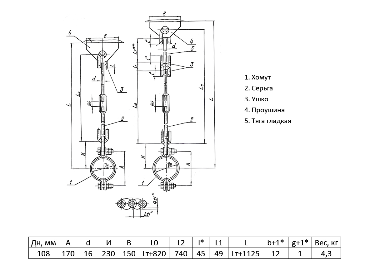 Подвеска жесткая ТС-677 Ду 108 Ру 40 Серия 5.903-13 выпуск 6-95 Lт+1125