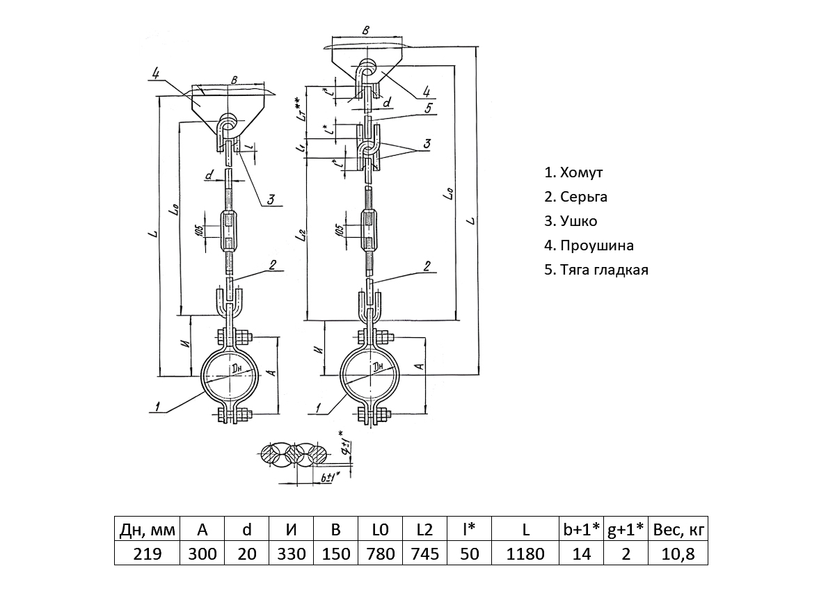 Подвеска жесткая ТС-677 Ду 219 Ру 40 Серия 5.903-13 выпуск 6-95 L 1180