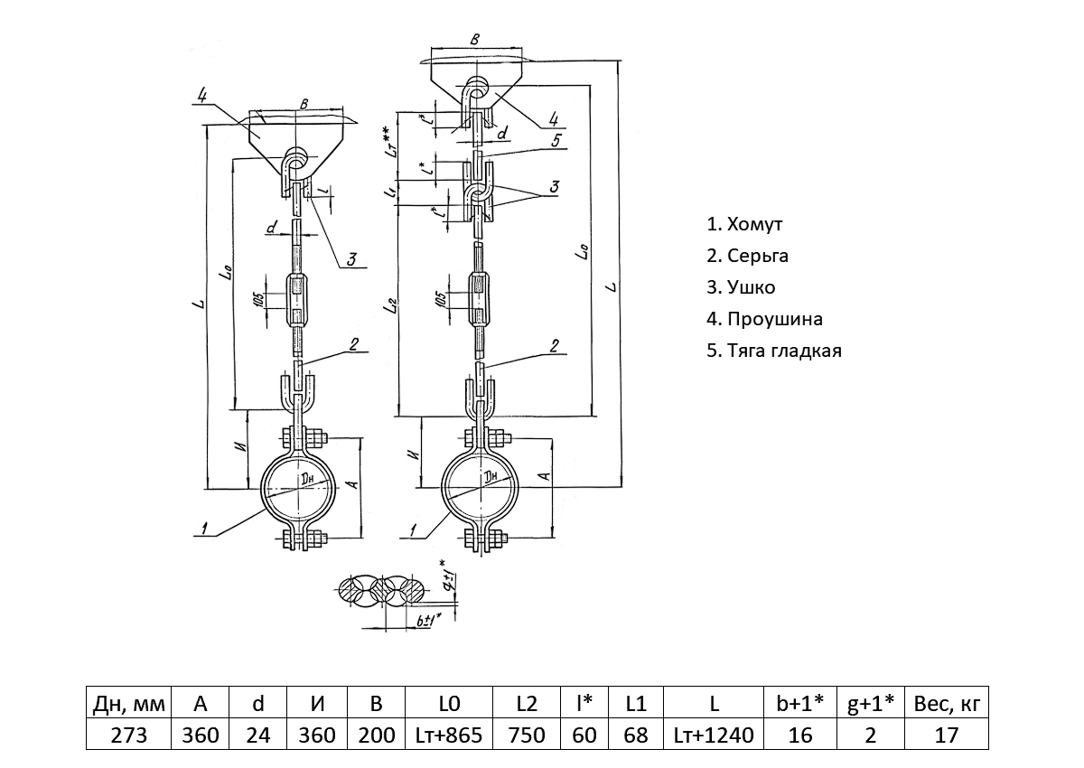 Подвеска жесткая ТС-677 Ду 273 Ру 40 Серия 5.903-13 выпуск 6-95 Lт+1240
