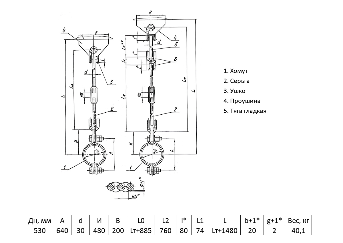 Подвеска жесткая ТС-677 Ду 530 Ру 40 Серия 5.903-13 выпуск 6-95 Lт+1480