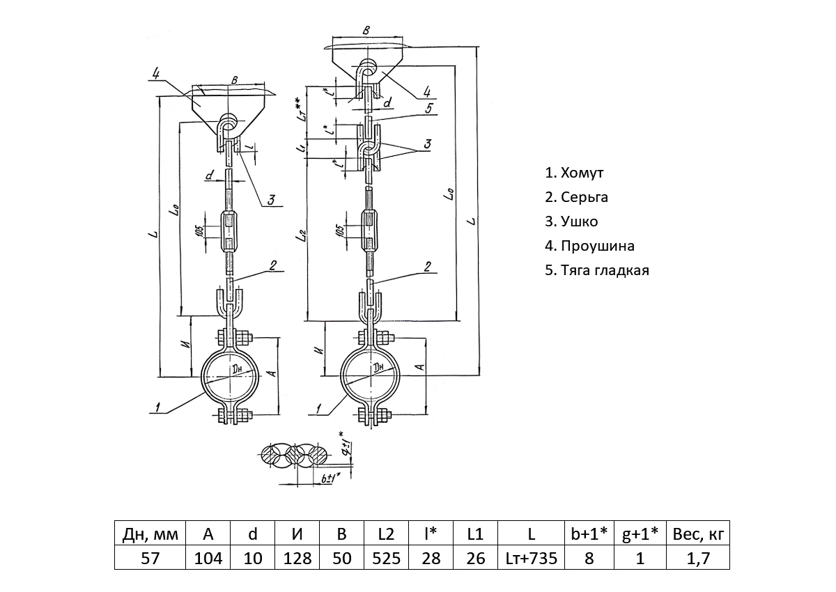 Подвеска жесткая ТС-677 Ду 57 Ру 40 Серия 5.903-13 выпуск 6-95 Lт+735