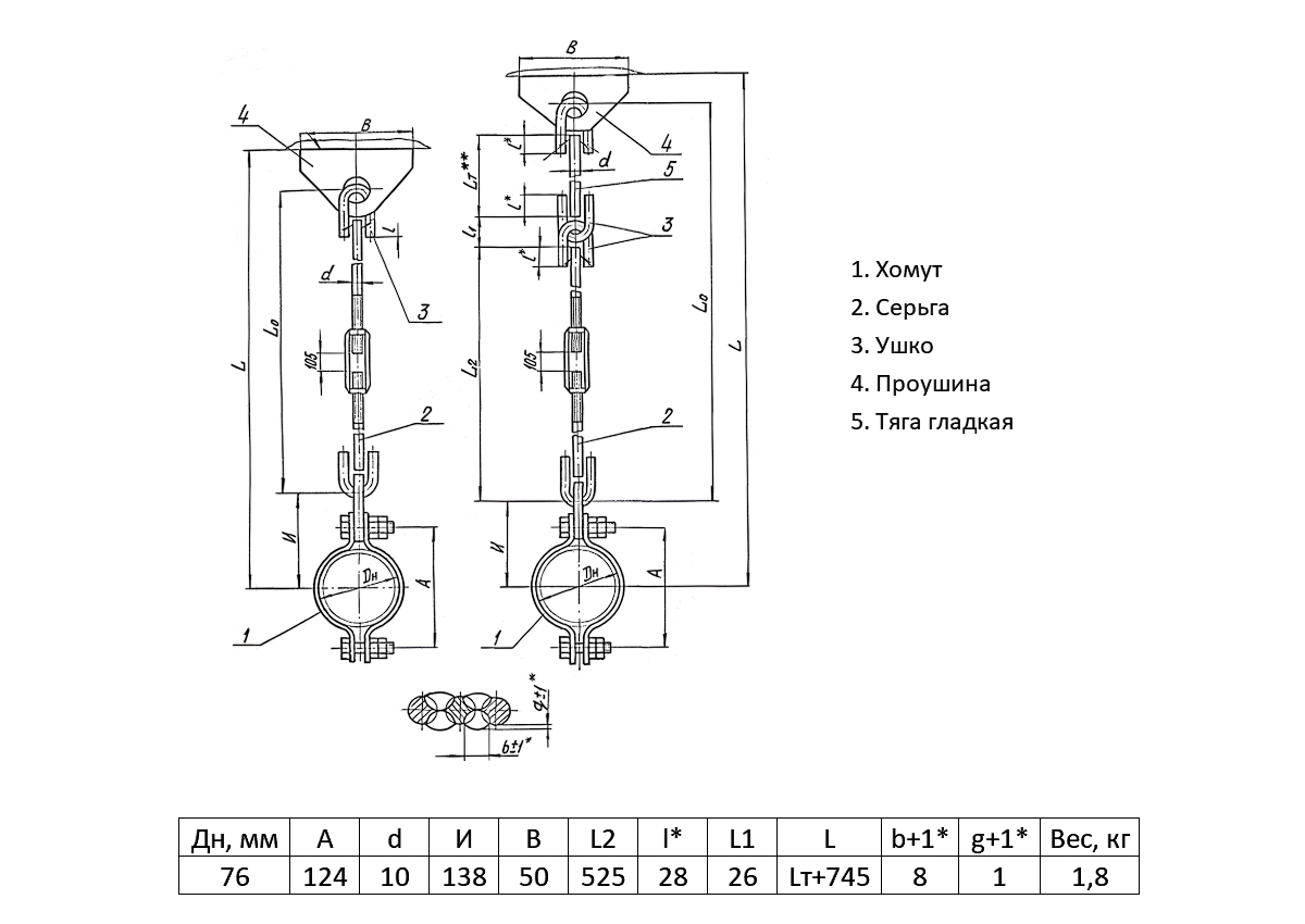 Подвеска жесткая ТС-677 Ду 76 Ру 40 Серия 5.903-13 выпуск 6-95 Lт+745