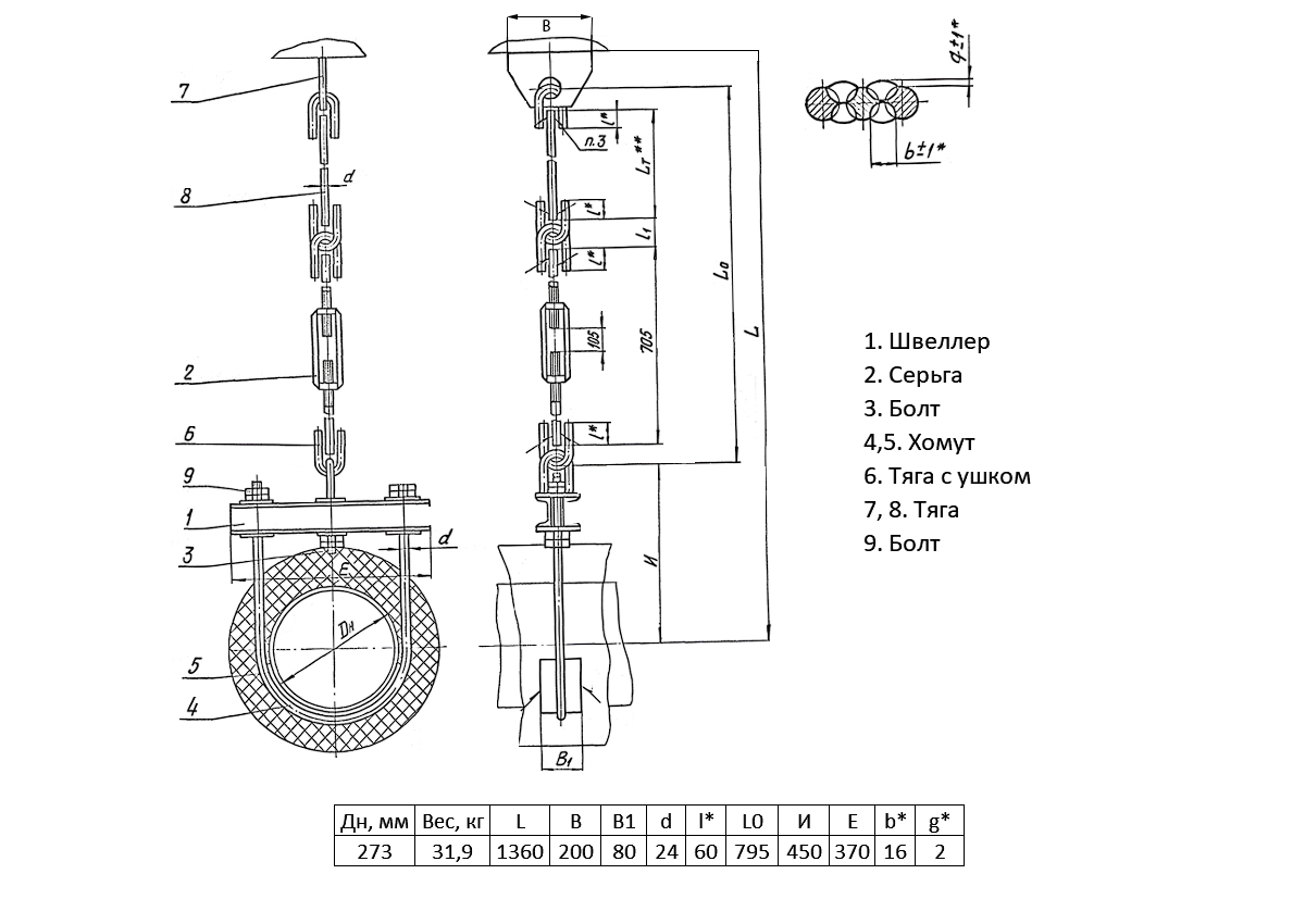 Подвеска жесткая ТС-678 Ду 273 Ру 40 Серия 5.903-13 выпуск 6-95 L 1360