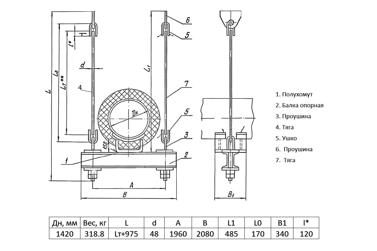 Подвеска жесткая ТС-680 Ду 1420 Ру 40 Серия 5.903-13 выпуск 6-95 Lт+975