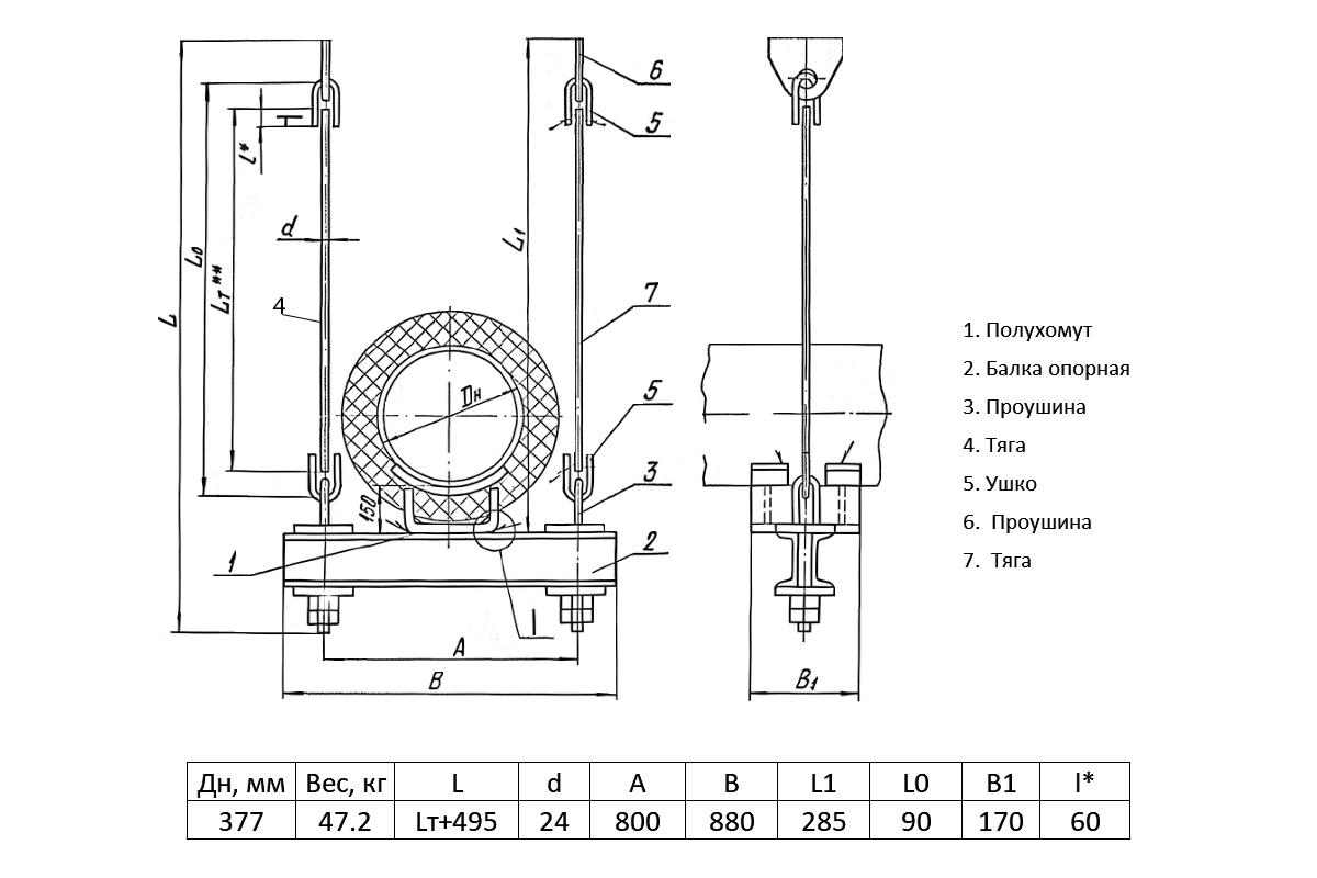 Подвеска жесткая ТС-680 Ду 377 Ру 40 Серия 5.903-13 выпуск 6-95 Lт+495