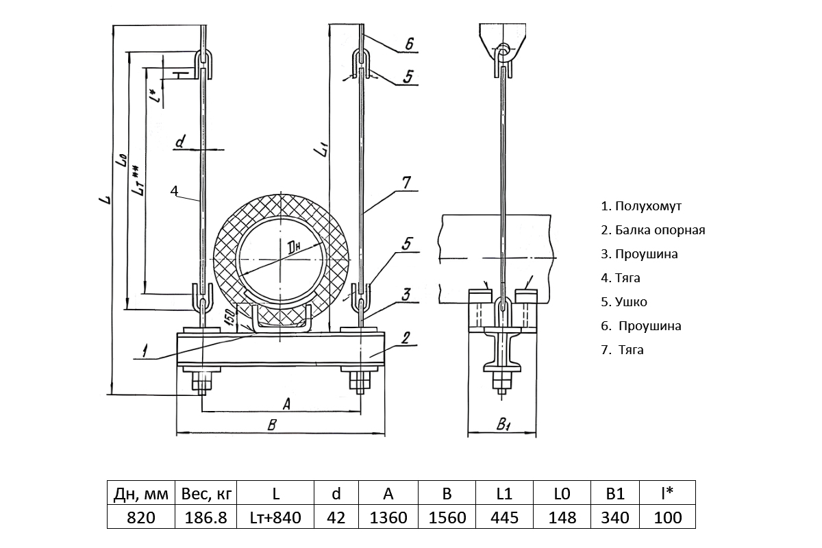Подвеска жесткая ТС-680 Ду 820 Ру 40 Серия 5.903-13 выпуск 6-95 Lт+840