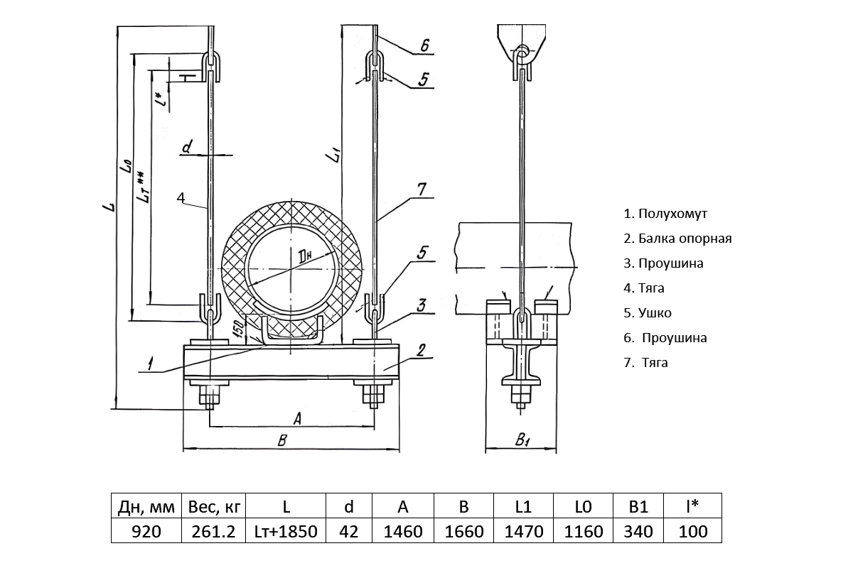 Подвеска жесткая ТС-680 Ду 920 Ру 40 Серия 5.903-13 выпуск 6-95 Lт+1850