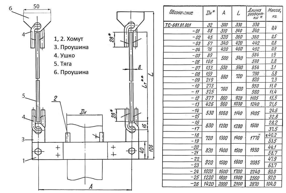 Подвеска жесткая ТС-681.00.000-01 Ду 38 Ру 40 Серия 5.903-13 выпуск 6-95