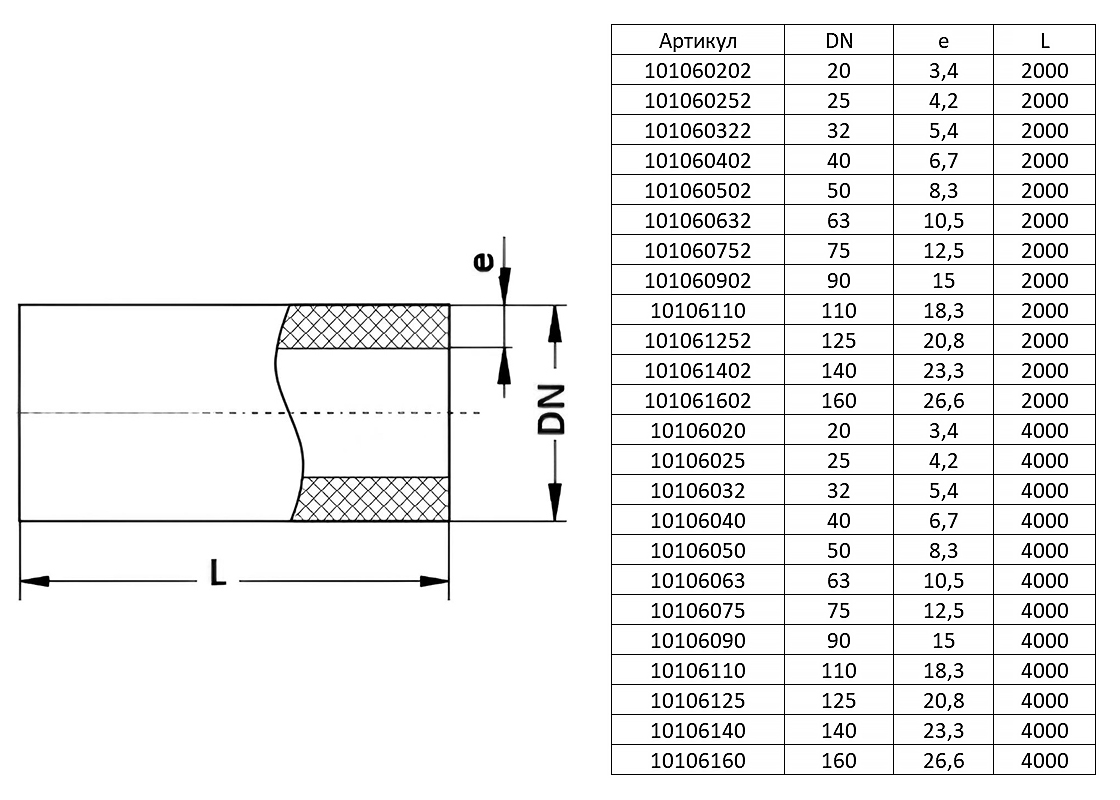 Полипропиленовая труба VALFEX 110х18,3х4000 PN 25 SDR 6 армированная стекловолокном белая