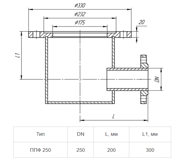 Пожарная подставка ППФО Ду 250 ВЧШГ чугунная фланцевая односторонняя