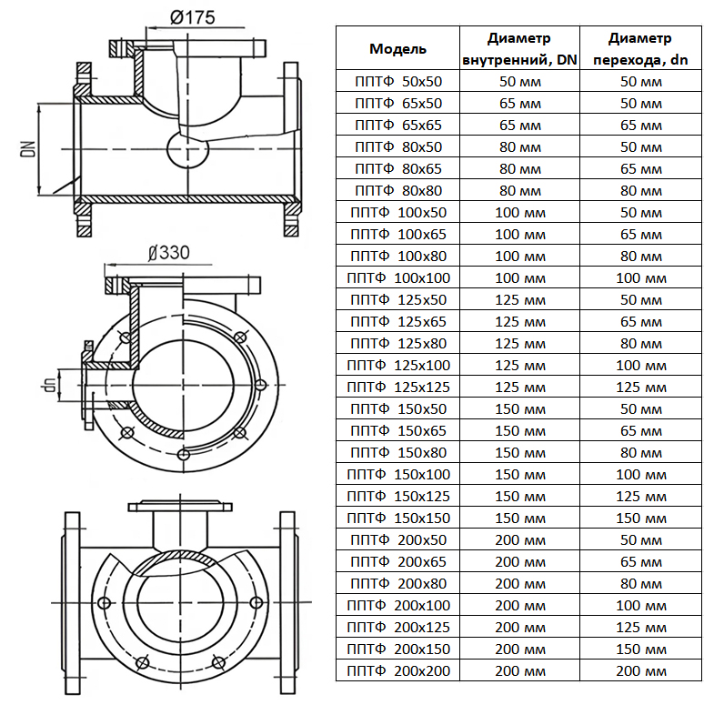 ППТФ стальной тройник-подставка 200х80 Ру 10