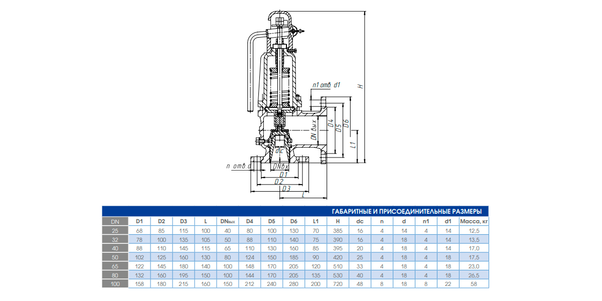 Предохранительный клапан 17с28нж Ду 40-65