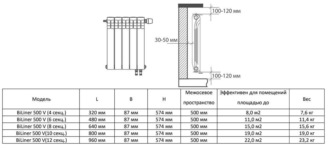 Радиатор биметаллический Royal Thermo BiLiner 500 VR (10 секций) Bianco Traffico