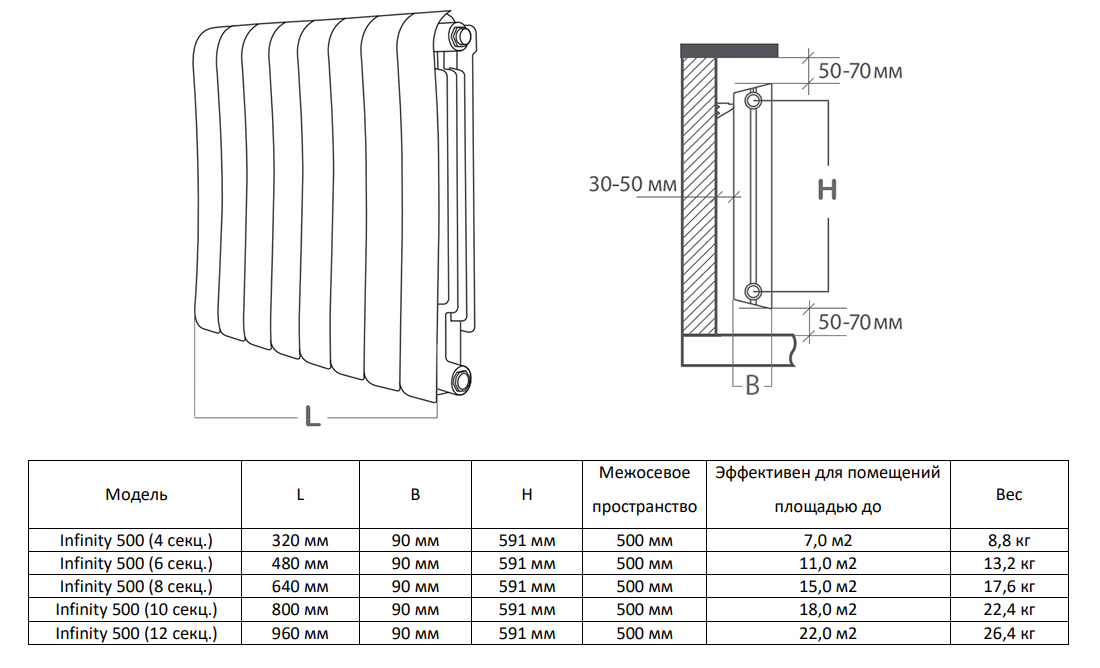 Радиатор биметаллический Royal Thermo Infinity 500 (4 cекции) Silver Satin