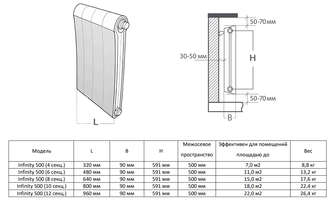 | Эффективен для помещ. площадью до | |