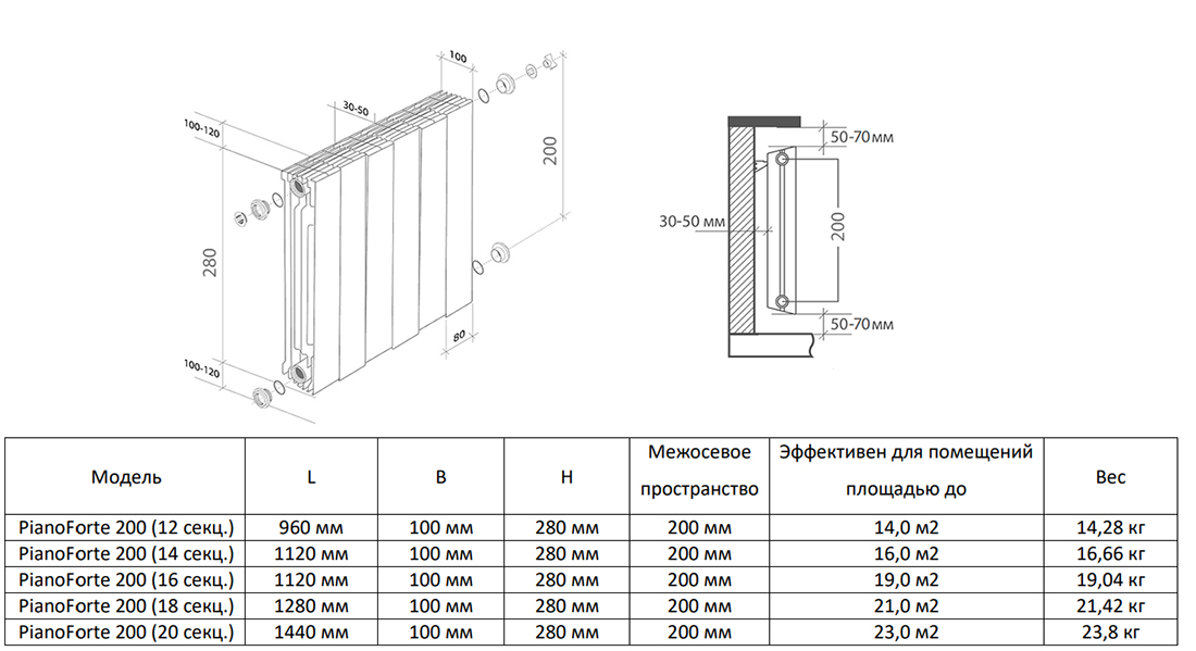 Радиатор биметаллический Royal Thermo PianoForte 200 (20 секций) Noir Sable