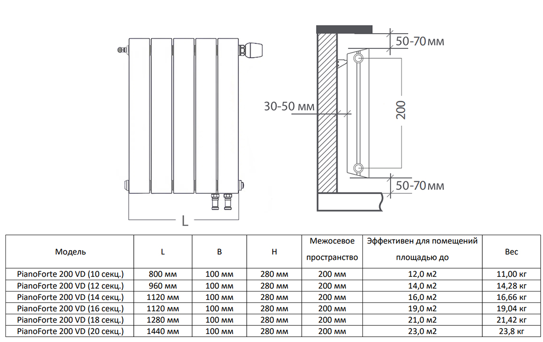 Радиатор биметаллический Royal Thermo PianoForte 200 VD (18 секций) Noir Sable