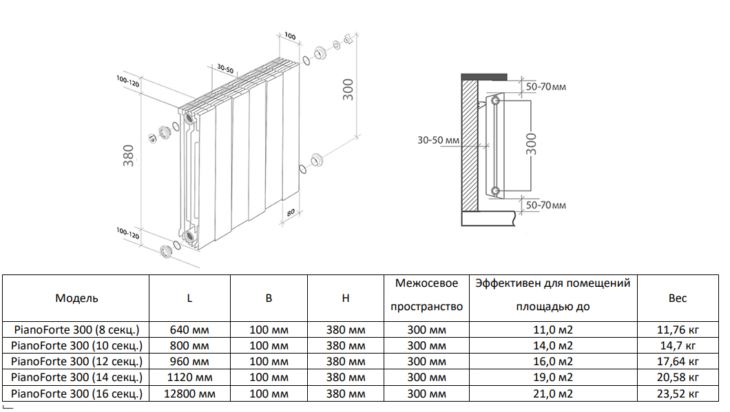 Теплоотдача при dt= 50°c1200 Вт