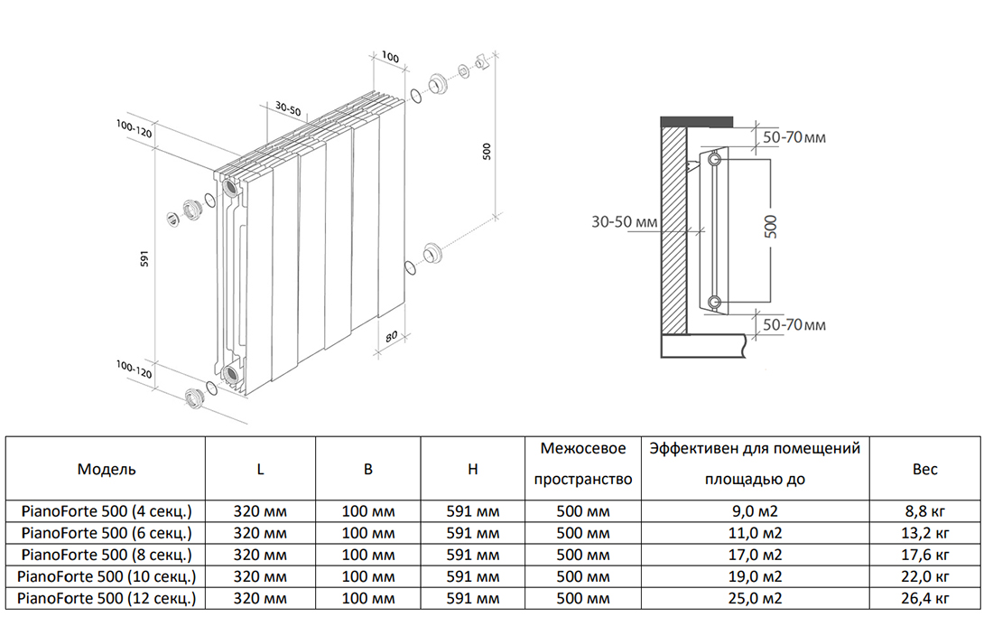 | Теплоотдача при dt= 50°c | |