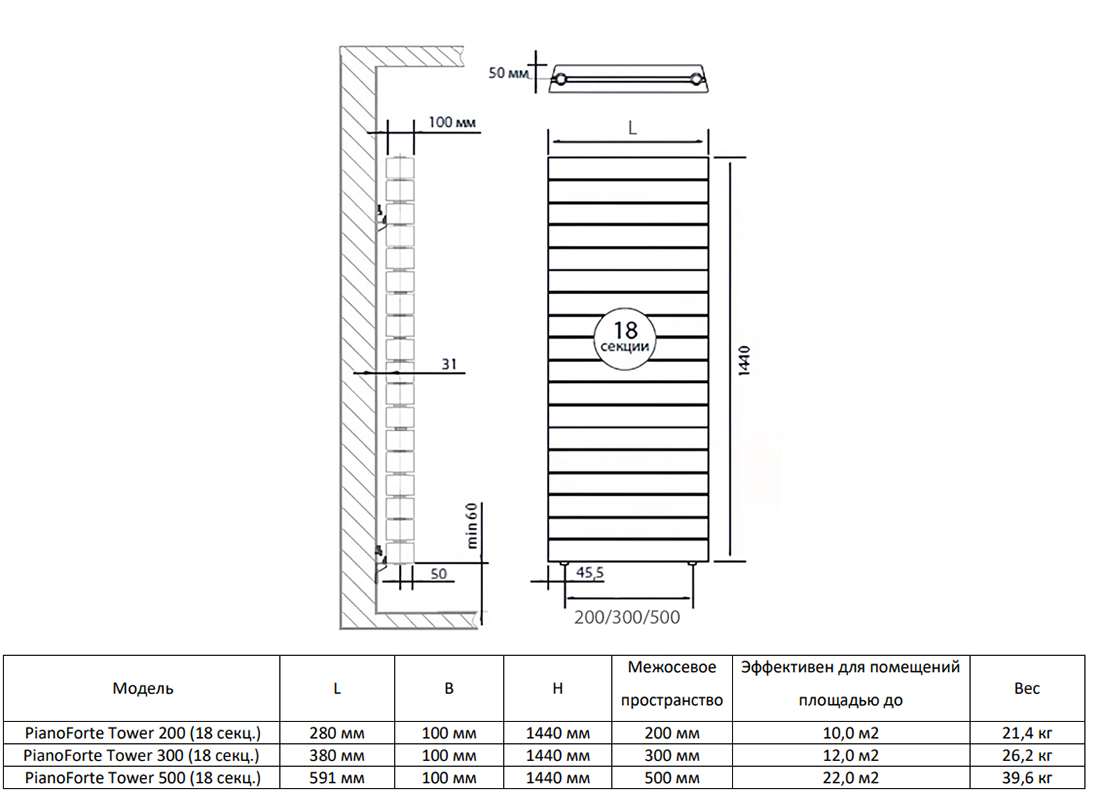Радиатор биметаллический Royal Thermo PianoForte Tower 200 (18 cекций) Silver Satin