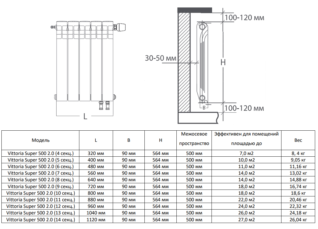 Радиатор биметаллический Royal Thermo Vittoria Super 500 2.0 (6 секций) Bianco Traffico