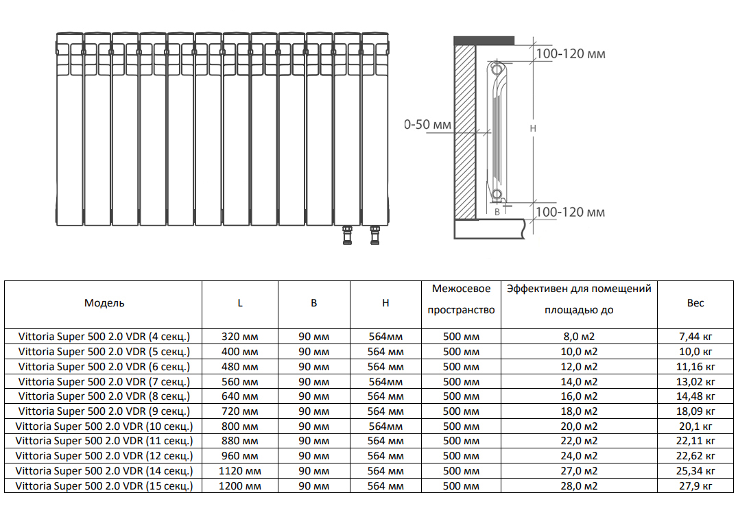 Радиатор биметаллический Royal Thermo Vittoria Super 500 2.0 VDR (4 секции) Bianco Traffico