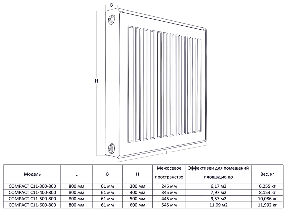 Радиатор панельный Royal Thermo COMPACT C11-300-800 Noir Sable